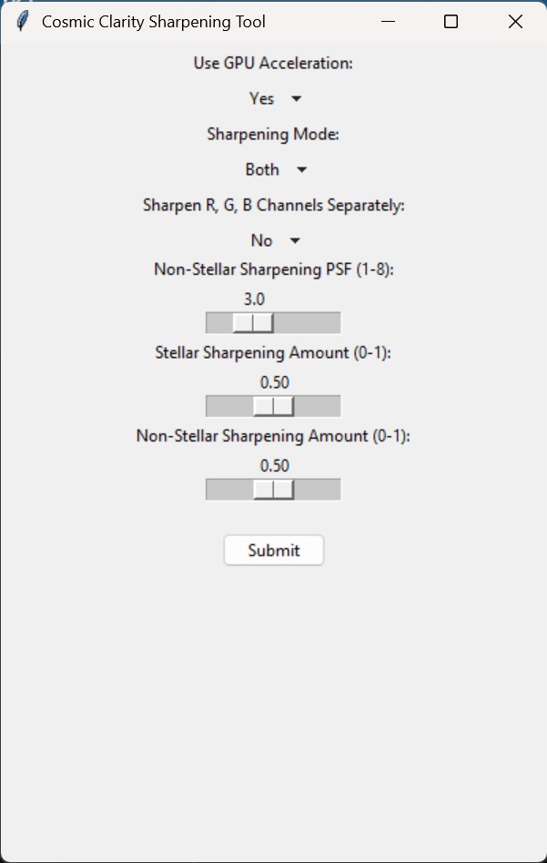 - Sharpening Mode - Wybór trybu: gwiazdy, przestrzeń międzygwiazdowa, oba
