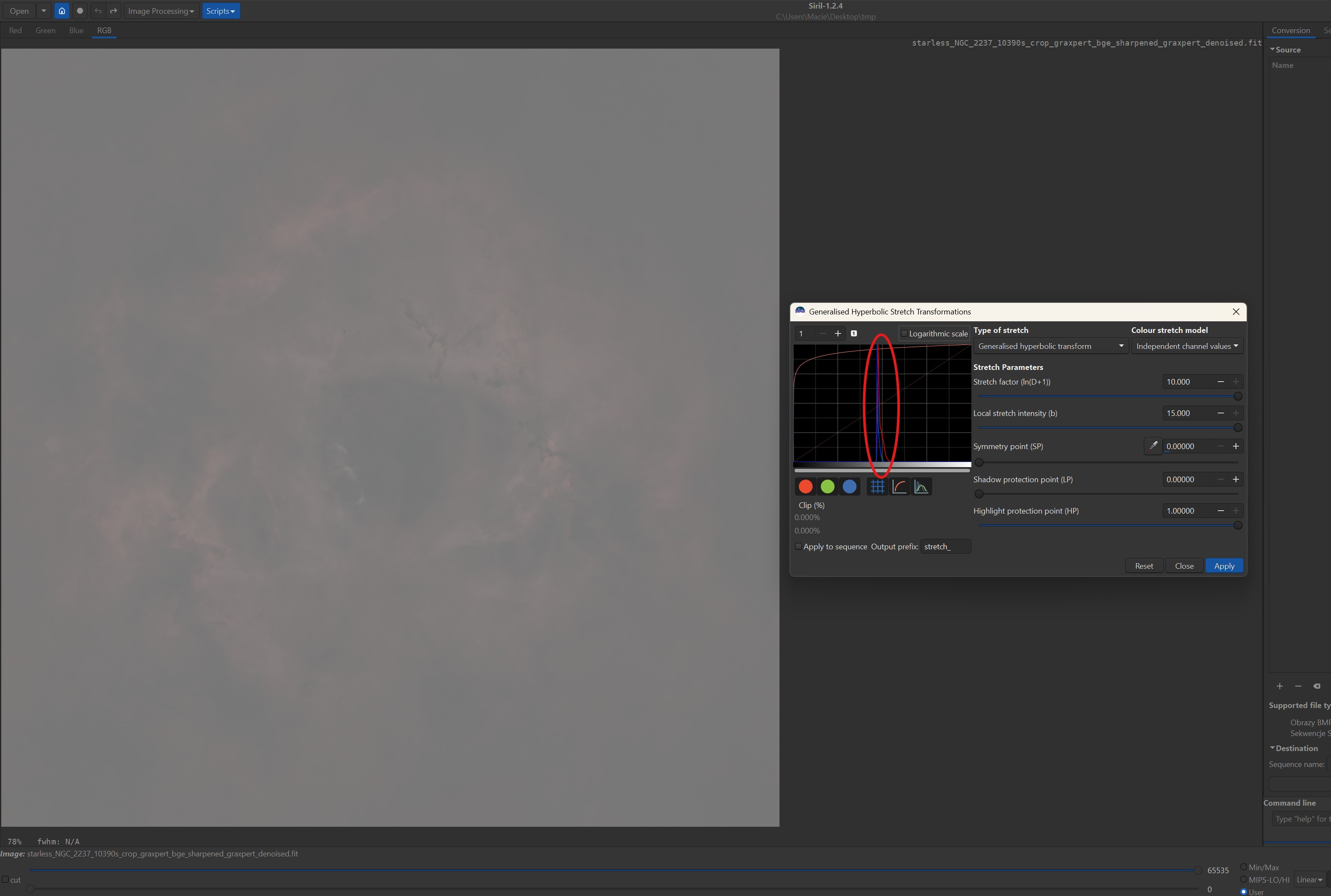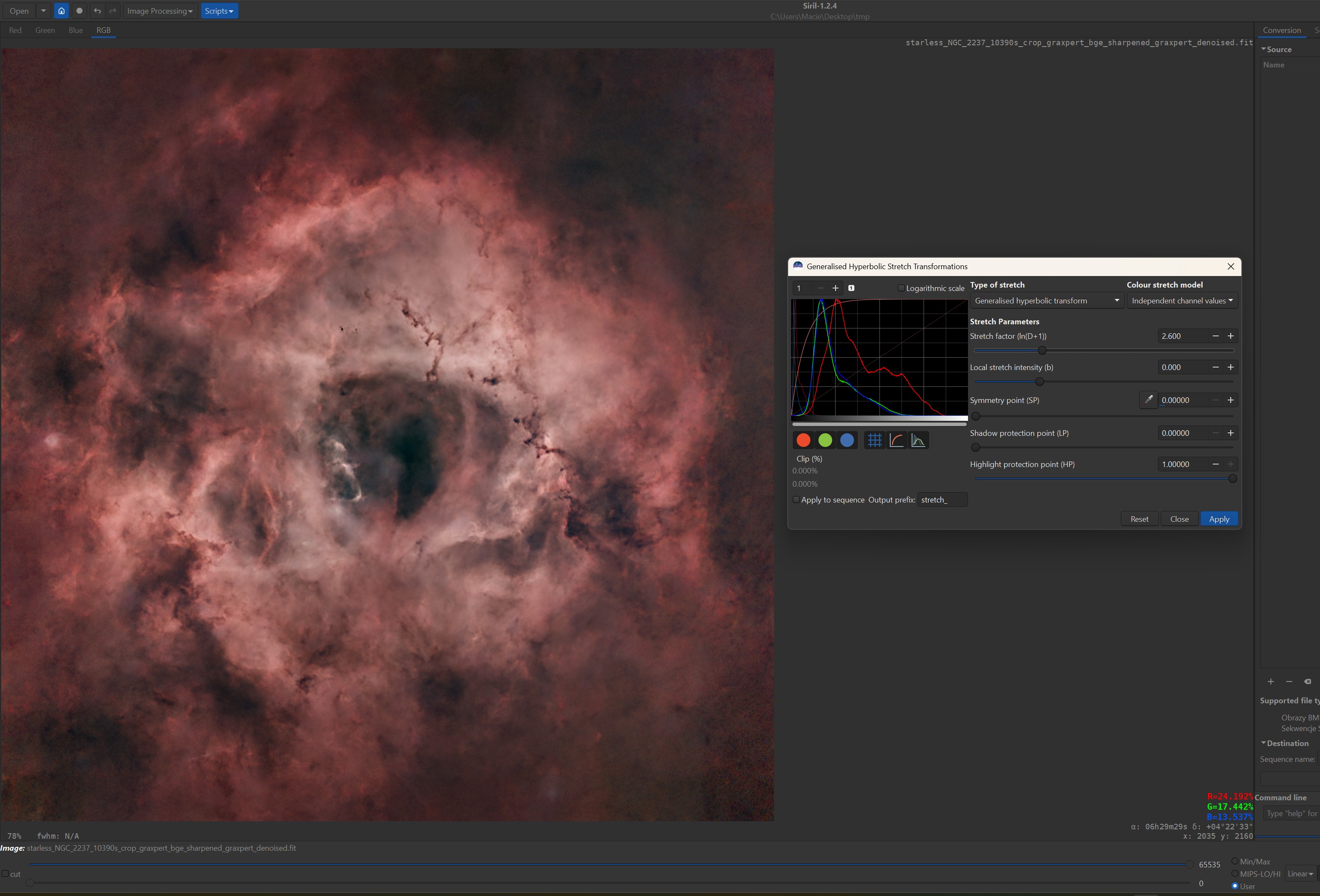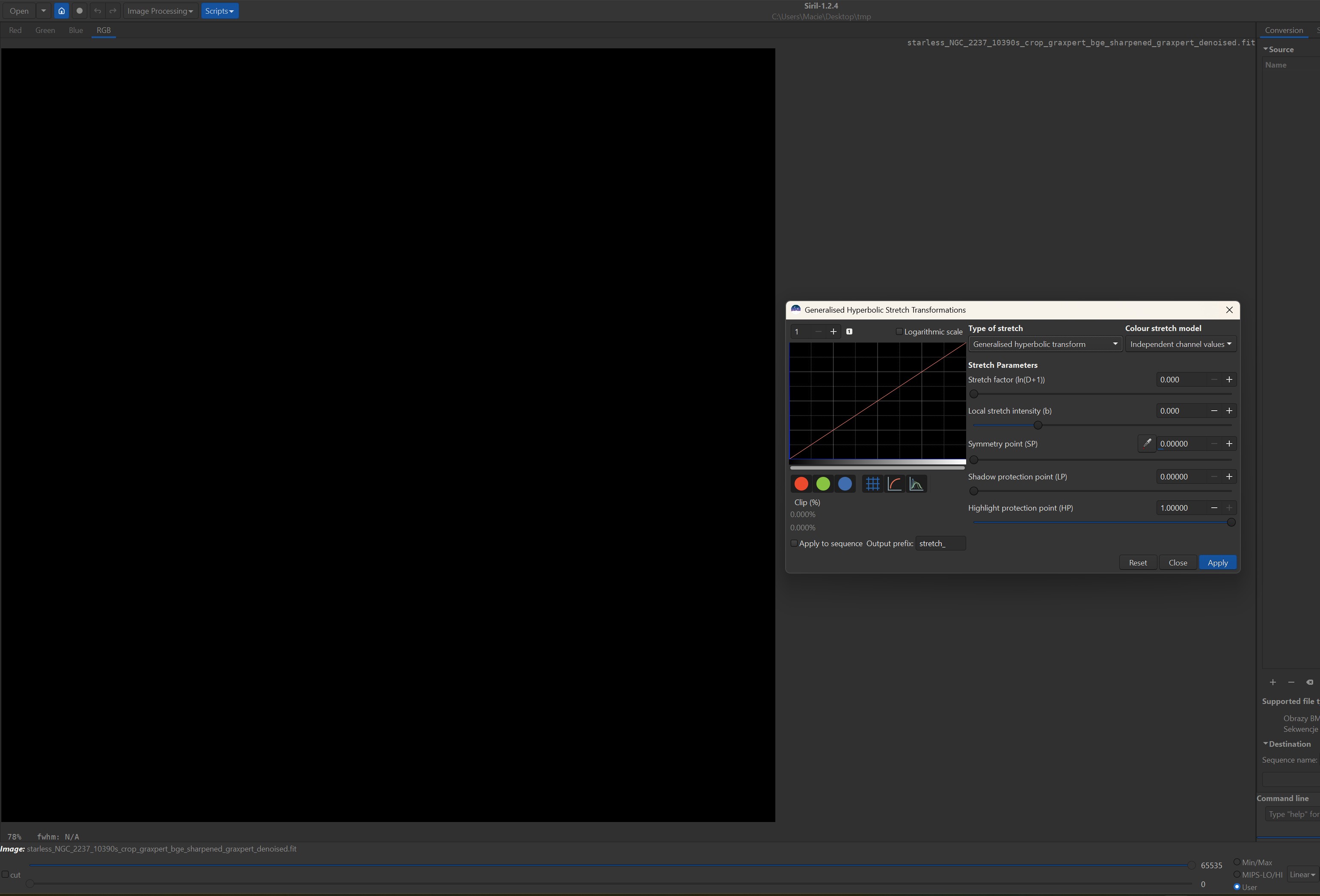 - Uruchamiany narzędzie GHS: Image Processing -> Generalised Hyperbolic Stretch Transformations