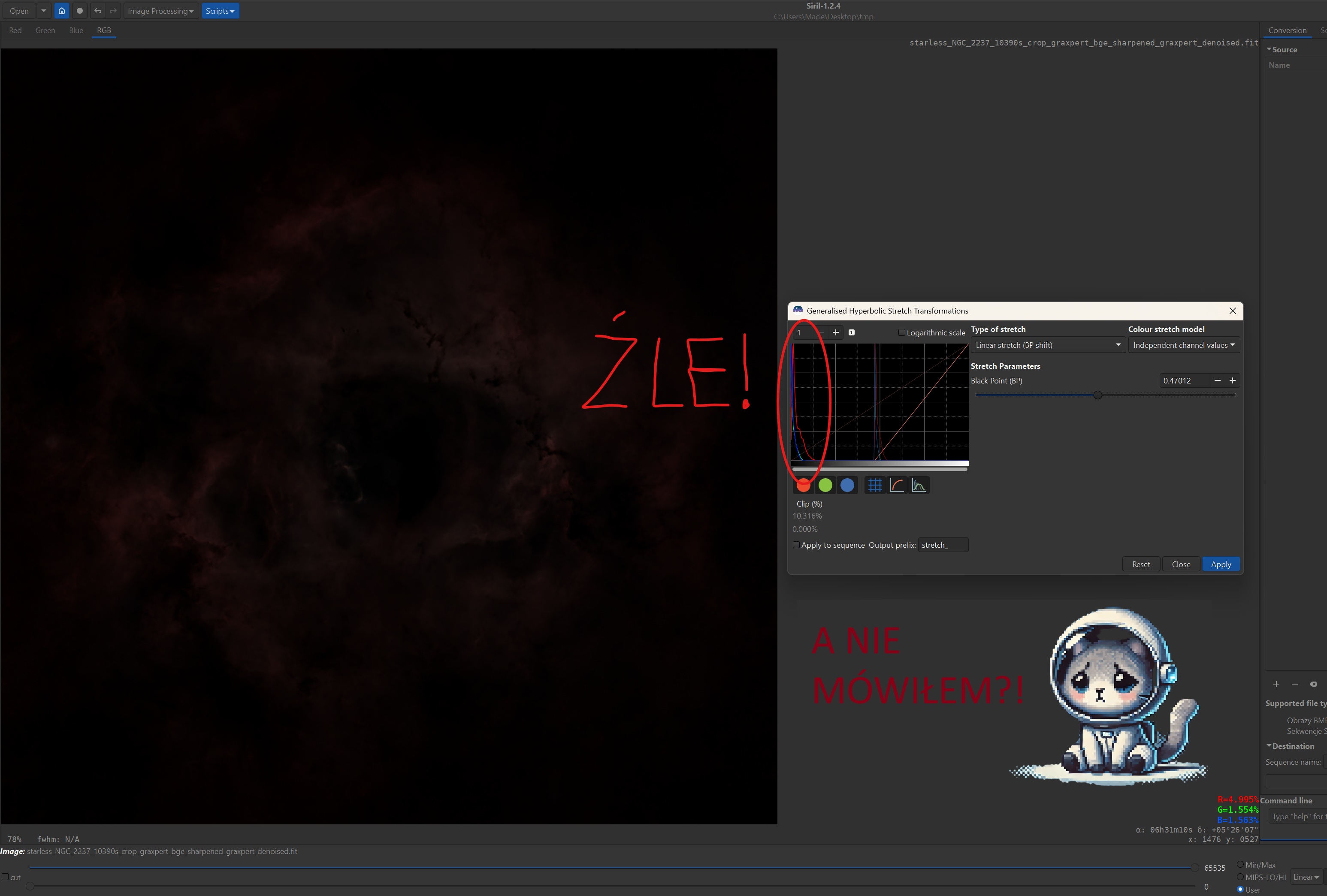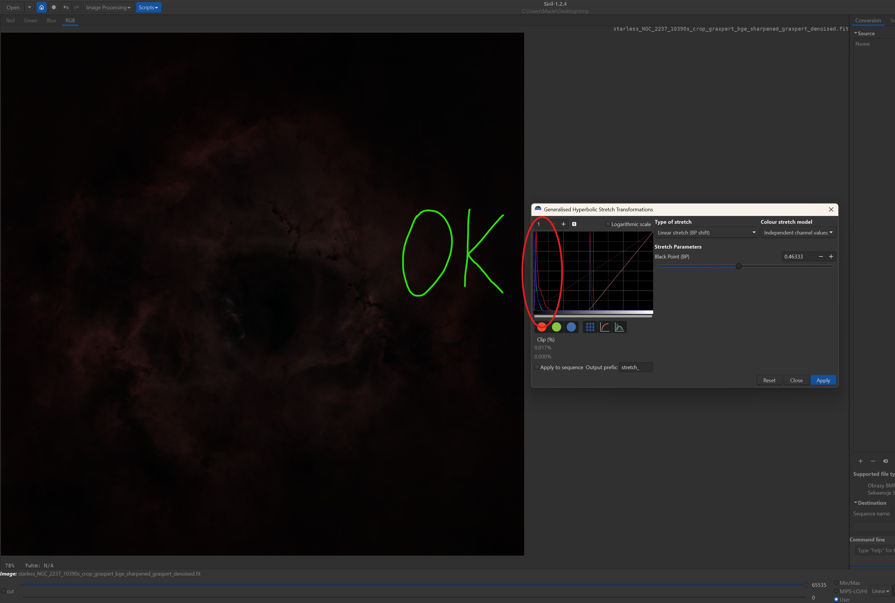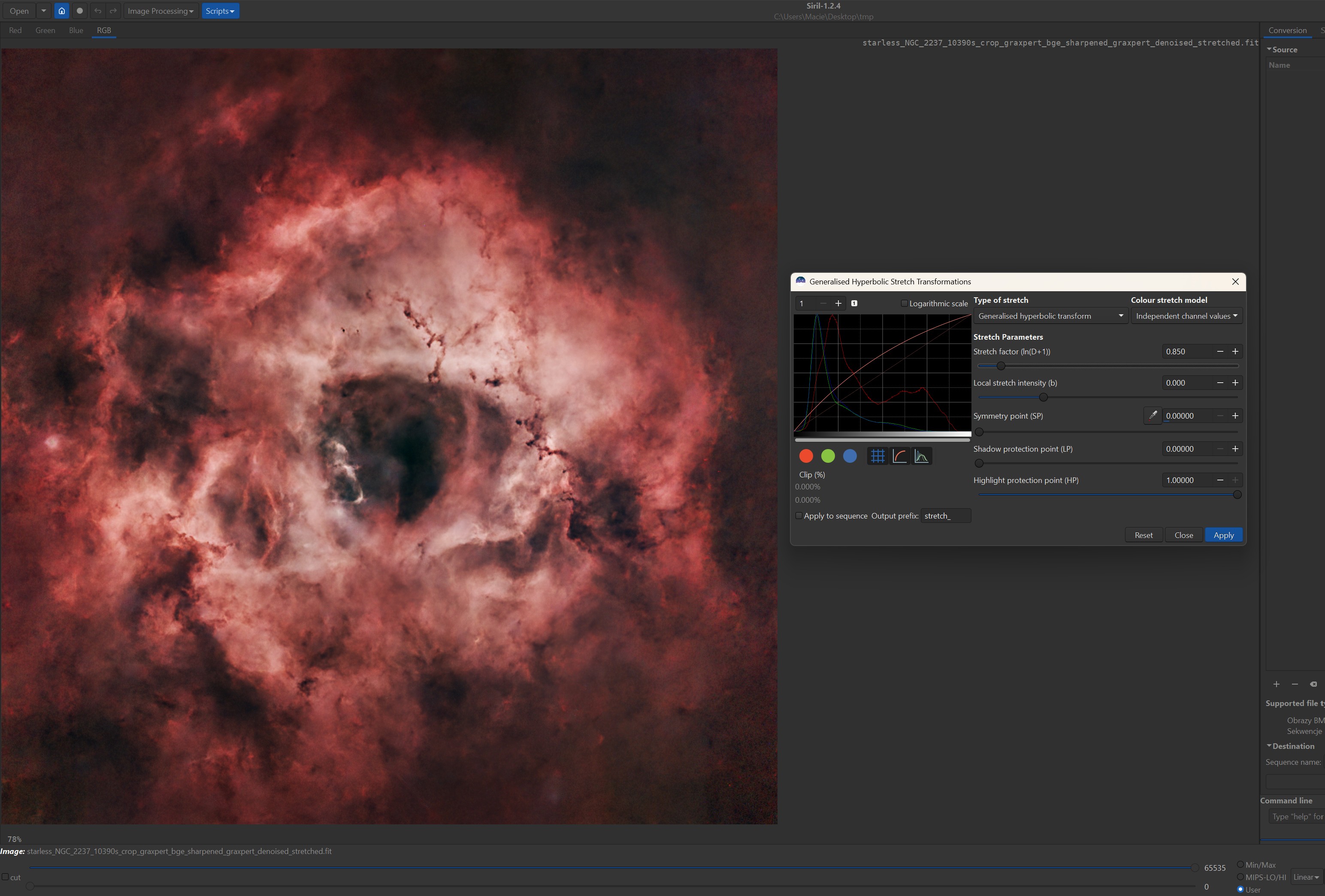 - Uruchamiany narzędzie GHS: Image Processing -> Generalised Hyperbolic Stretch Transformations